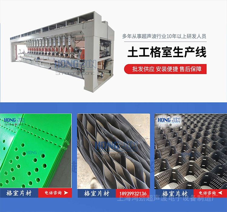 我公司制造土工格室生产线设备,是由多台超声波塑料焊接机组合而成采用进口PLC控制具有 如 下先进特点: